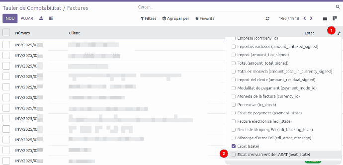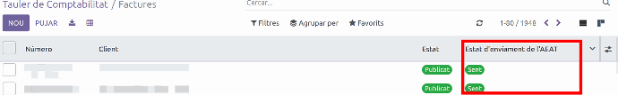 Apareix un camp (que es pot mostrar opcionalment) que indica l'estat d'enviament a Verifactu.
